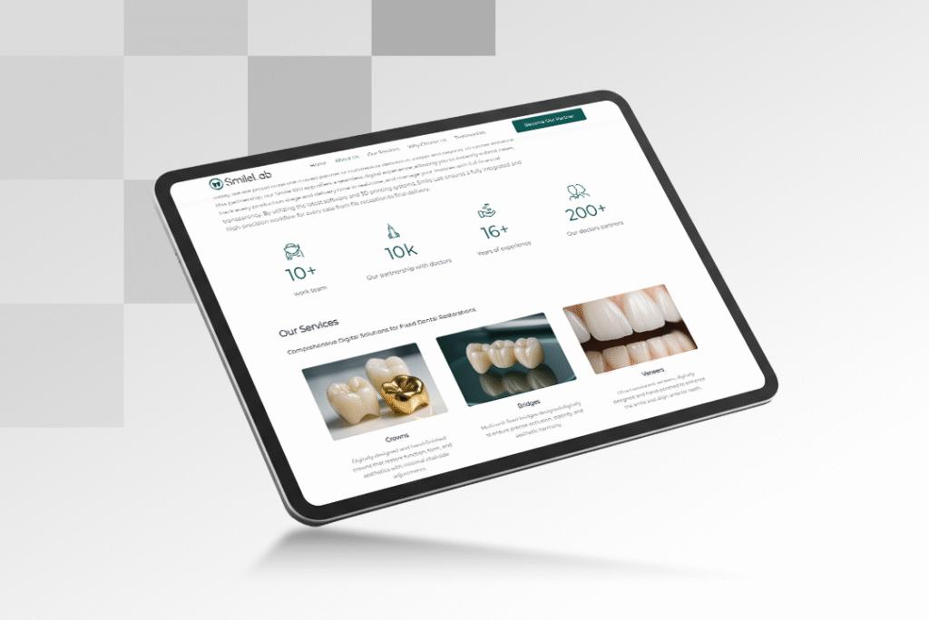 Smile Lab is a modern technical laboratory specializing in the manufacturing of dental prosthetics and restorations. We launched the Smile Lab website and application as the primary technical destination for dentists in Jordan, enabling them to access services and order products and samples from the laboratory in record time through highly practical methods. Both the application and website were designed with user-friendly interfaces and precise technical tracking of all operations to ensure a smooth and reliable experience for both doctors and patients. From a marketing perspective, we built a strong digital identity and a professional message that reflects the high level of technical precision offered by Smile Lab, positioning it as a competitive solution that supports dental clinics with a modern approach. This strategy enhanced trust in the services, establishing Smile Lab as a prominent name in the medical laboratory field and strengthening its position as a competitive force delivering exceptional professional standards in the local market.